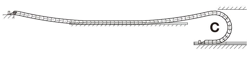 如果在整個(gè)行程中拖鏈的上部未接觸下部。這種情況我們稱之為架空。移動端到拖鏈彎曲半徑圓弧的距離稱之為架空長度。架空是最常用的應(yīng)用。工程拖鏈非常適用高要求長使用壽命的場合。最在架空長度取決于拖鏈或拖管的類型以及內(nèi)部負(fù)載。