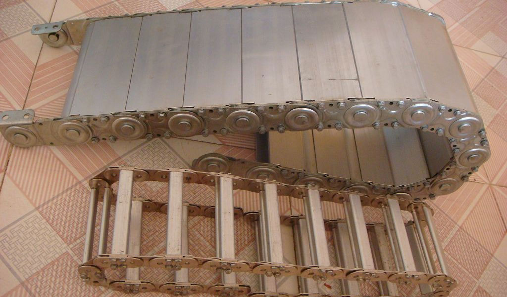 拖鏈的固定可根據(jù)機(jī)床位置情況選擇. 固定角鋼可放在外周或內(nèi)周在拖鏈內(nèi)或外部 , 一般情況聯(lián)結(jié)部分在拖鏈內(nèi) , 而向外周。TLG系列鋼制拖鏈,是一種新型鋼制拖鏈,是TL系列的補充。相對比TL系列鋼制穿線拖鏈具有機(jī)械強度更大、外形更加美觀的特點。鋼制拖鏈可以根據(jù)需要做淬火、滲碳處理,以獲得更強的機(jī)械強度與韌性。鋼制拖鏈表面可以做鍍鋅、鍍鉻、鍍鎳處理,以適應(yīng)不同的工作環(huán)境。鋼制拖鏈選型技術(shù)。