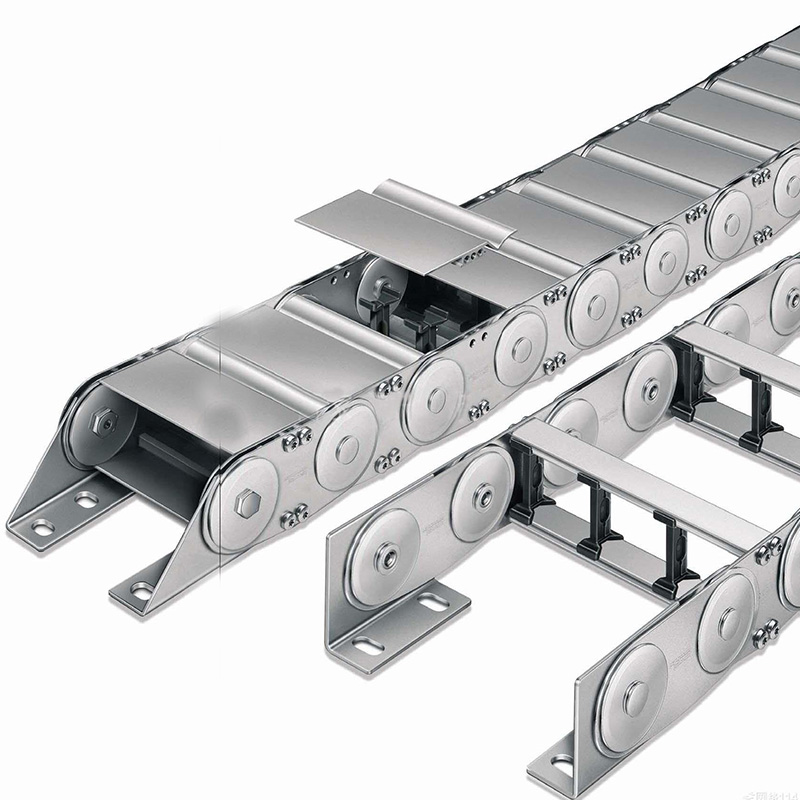 (2)鋼制拖鏈的每一節(jié)都能打開,便于安裝和維修。運動時噪音低、耐磨,可高速運動。