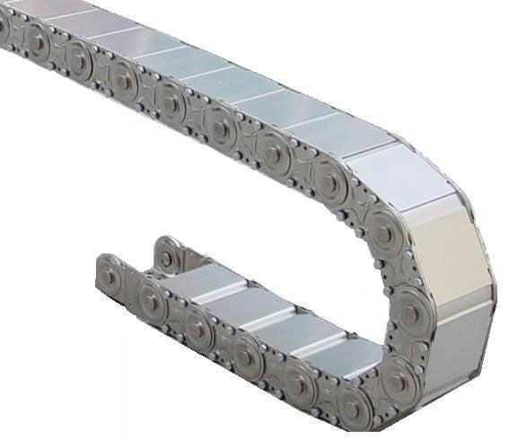 全封閉鋼鋁拖鏈一般應(yīng)用在機(jī)床機(jī)械等的電纜、油管、氣管、水管、風(fēng)管上,起牽引和保護(hù)作用。